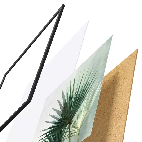 A poszter keretből, plexiből, nyomtatott képből és forgácslap hátlapból áll. A poszter a hátoldalon található rögzítőknek köszönhetően azonnal felakasztható a falra.