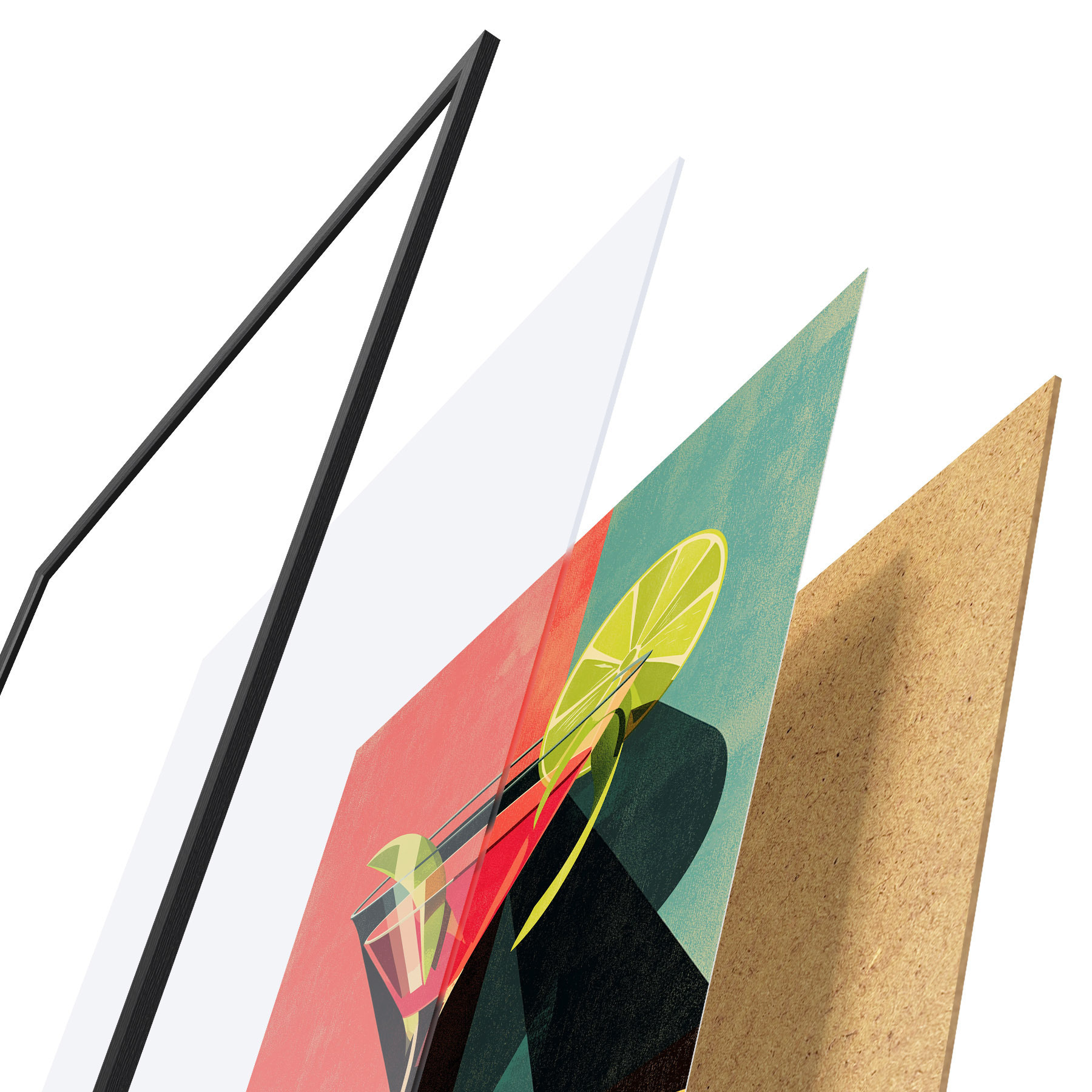 A poszter keretből, plexiből, nyomtatott képből és forgácslap hátlapból áll. A poszter a hátoldalon található rögzítőknek köszönhetően azonnal felakasztható a falra.