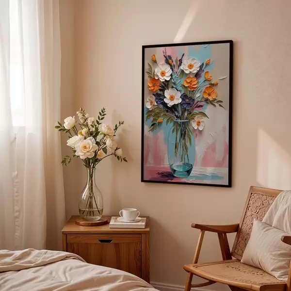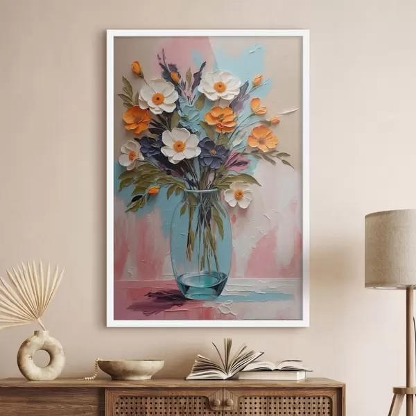 Poster Virágcsokor üvegvázában színes háttér előtt Nr f48488