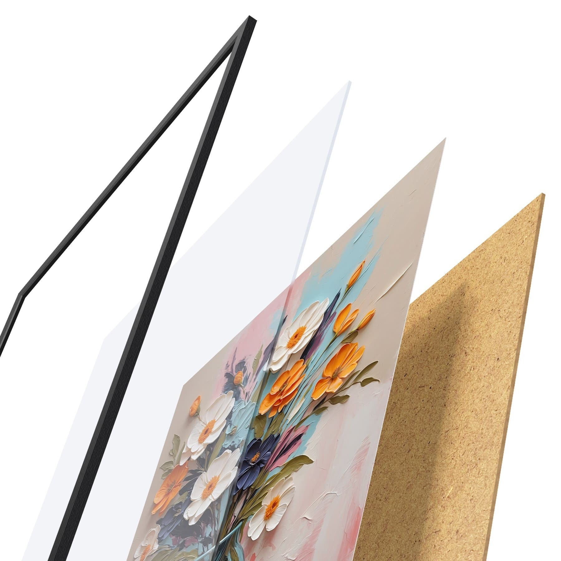 A poszter keretből, plexiből, nyomtatott képből és forgácslap hátlapból áll. A poszter a hátoldalon található rögzítőknek köszönhetően azonnal felakasztható a falra.