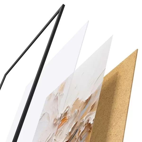 A poszter keretből, plexiből, nyomtatott képből és forgácslap hátlapból áll. A poszter a hátoldalon található rögzítőknek köszönhetően azonnal felakasztható a falra.