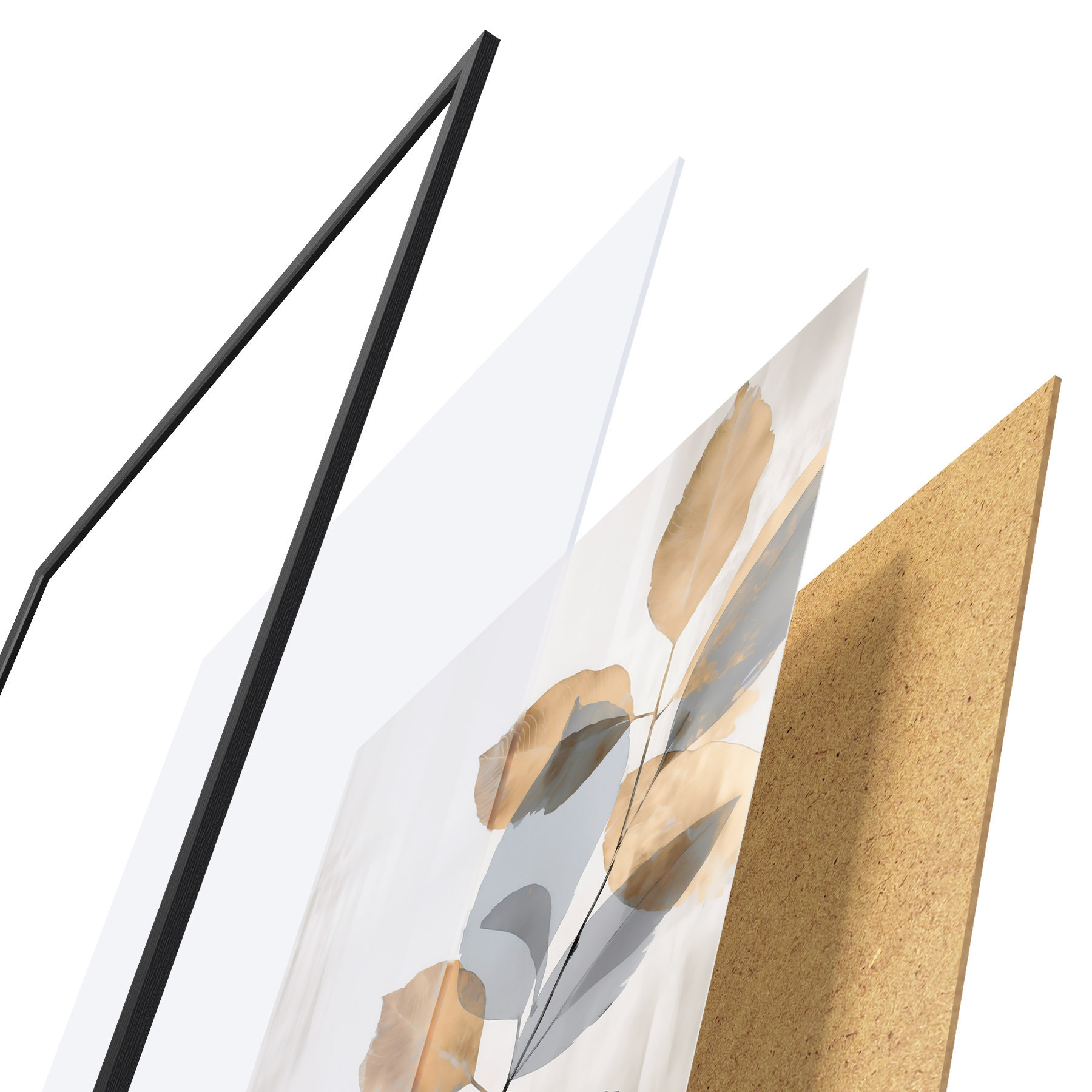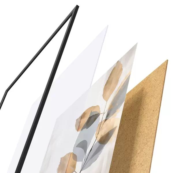 A poszter keretből, plexiből, nyomtatott képből és forgácslap hátlapból áll. A poszter a hátoldalon található rögzítőknek köszönhetően azonnal felakasztható a falra.