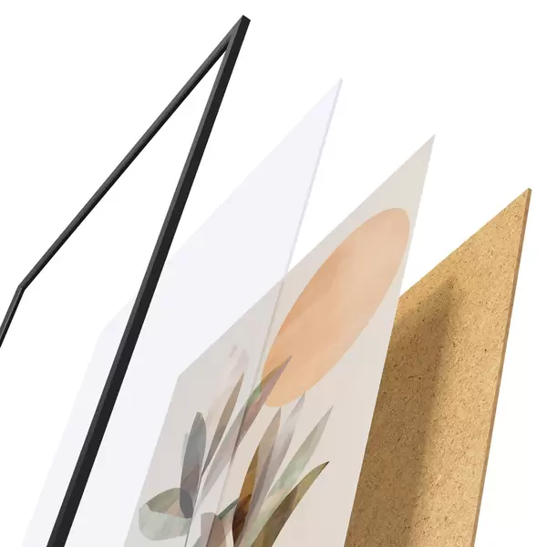 A poszter keretből, plexiből, nyomtatott képből és forgácslap hátlapból áll. A poszter a hátoldalon található rögzítőknek köszönhetően azonnal felakasztható a falra.