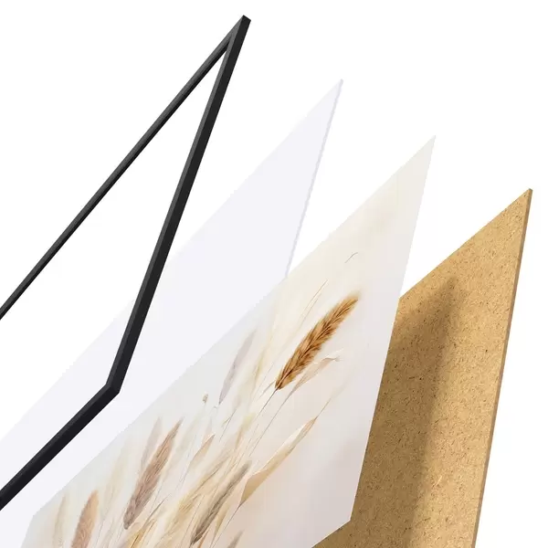 A poszter keretből, plexiből, nyomtatott képből és forgácslap hátlapból áll. A poszter a hátoldalon található rögzítőknek köszönhetően azonnal felakasztható a falra.
