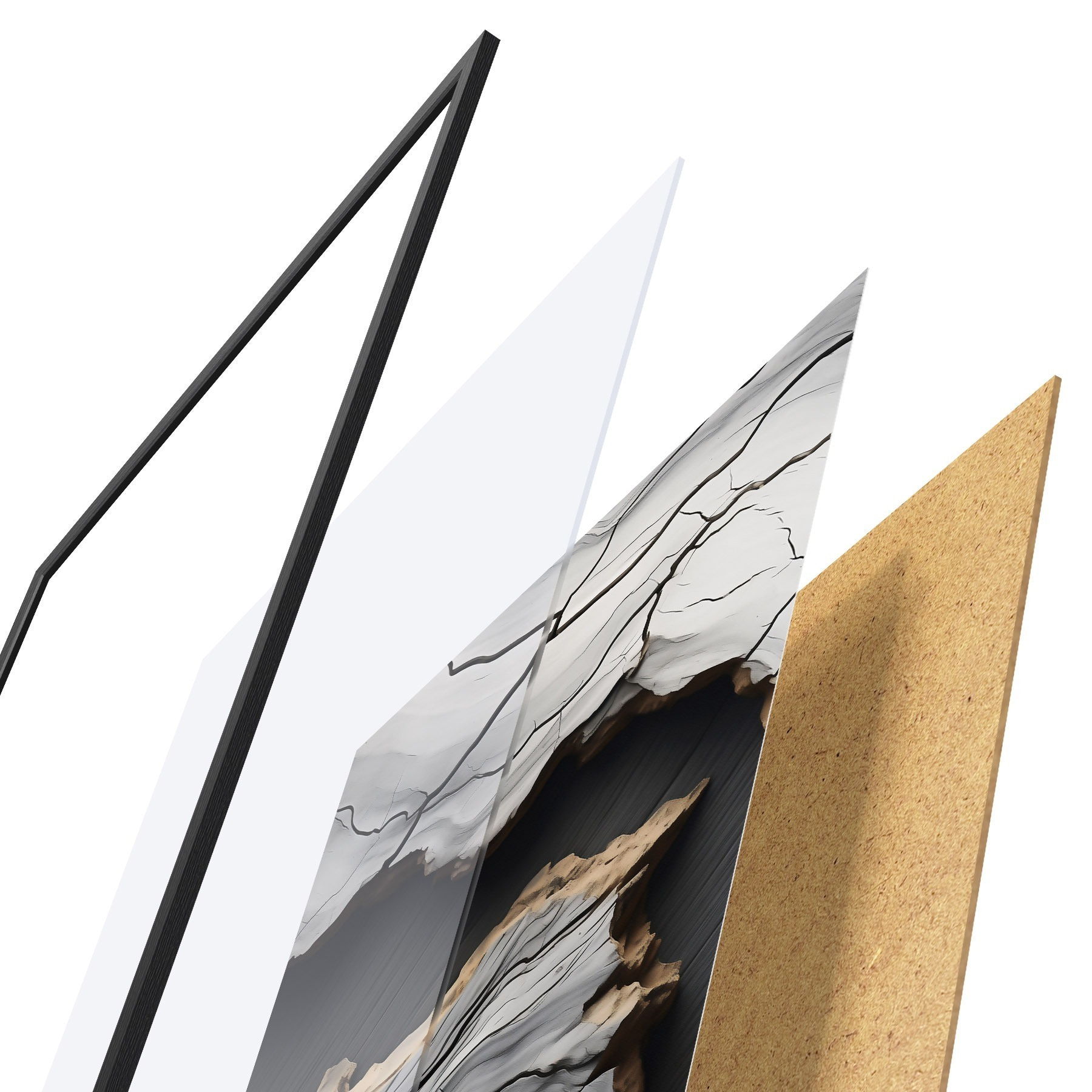 A poszter keretből, plexiből, nyomtatott képből és forgácslap hátlapból áll. A poszter a hátoldalon található rögzítőknek köszönhetően azonnal felakasztható a falra.