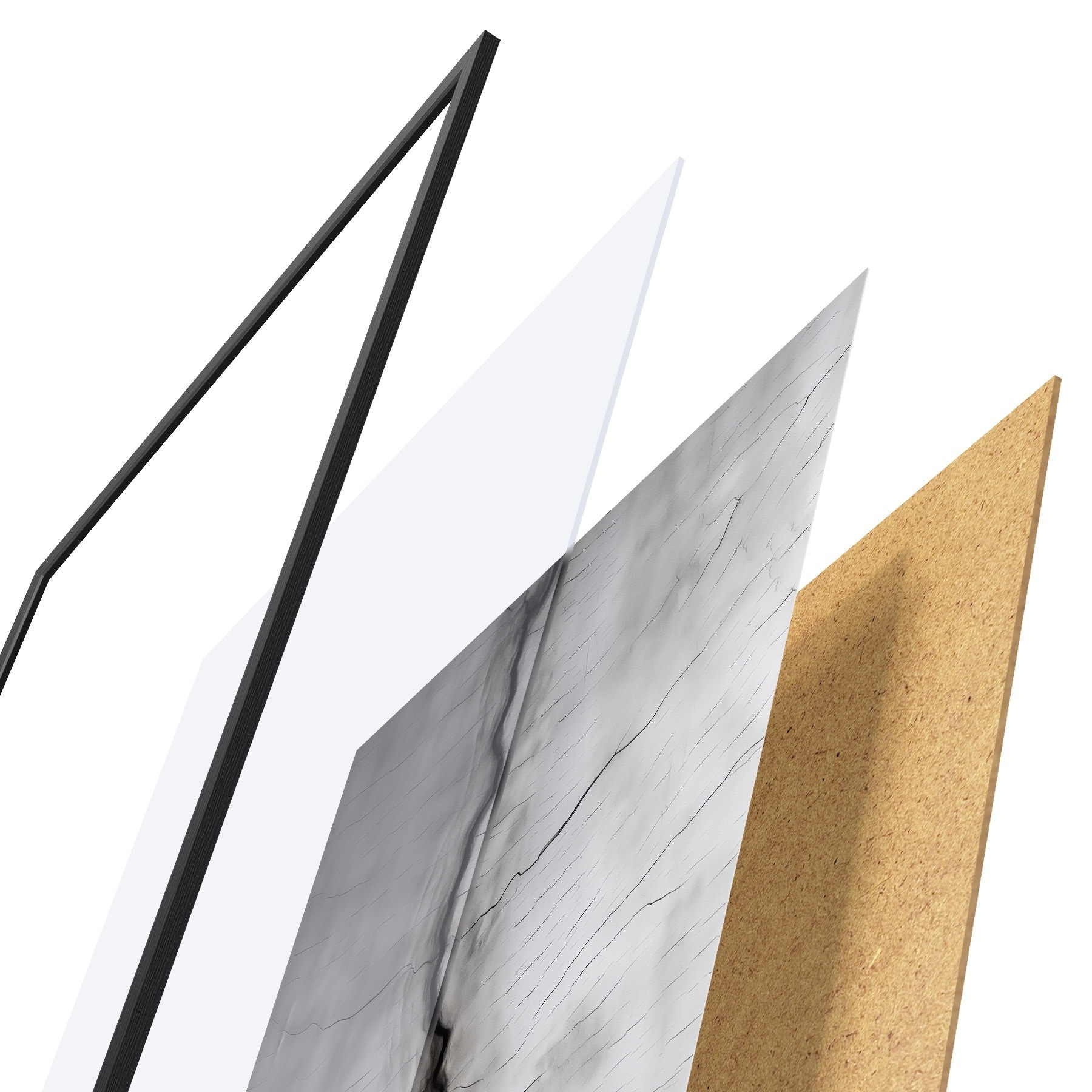 A poszter keretből, plexiből, nyomtatott képből és forgácslap hátlapból áll. A poszter a hátoldalon található rögzítőknek köszönhetően azonnal felakasztható a falra.