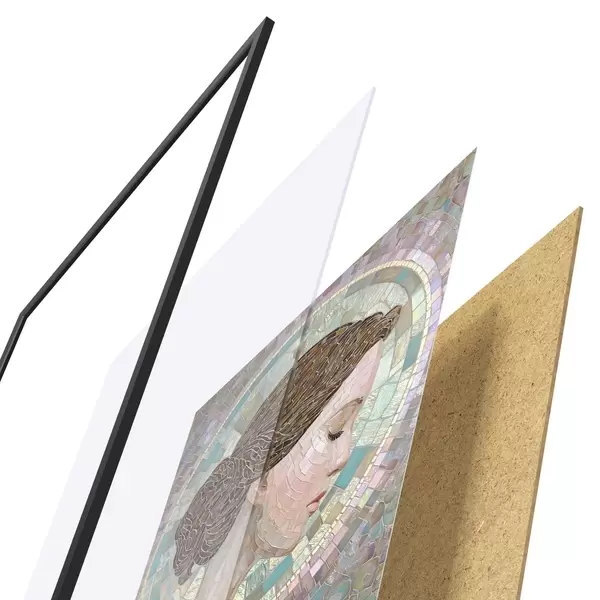 A poszter keretből, plexiből, nyomtatott képből és forgácslap hátlapból áll. A poszter a hátoldalon található rögzítőknek köszönhetően azonnal felakasztható a falra.