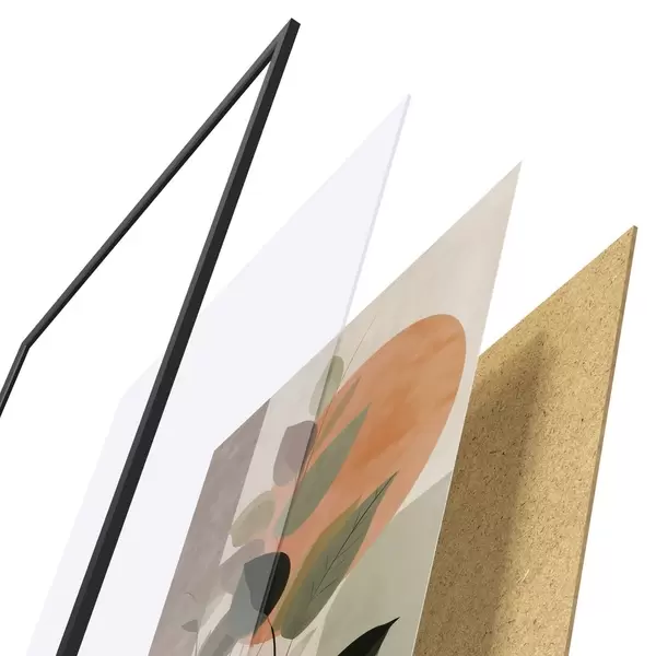 A poszter keretből, plexiből, nyomtatott képből és forgácslap hátlapból áll. A poszter a hátoldalon található rögzítőknek köszönhetően azonnal felakasztható a falra.