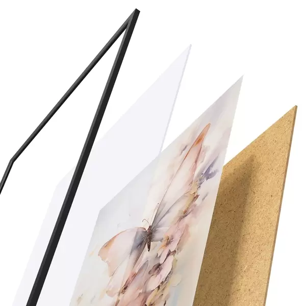 A poszter keretből, plexiből, nyomtatott képből és forgácslap hátlapból áll. A poszter a hátoldalon található rögzítőknek köszönhetően azonnal felakasztható a falra.