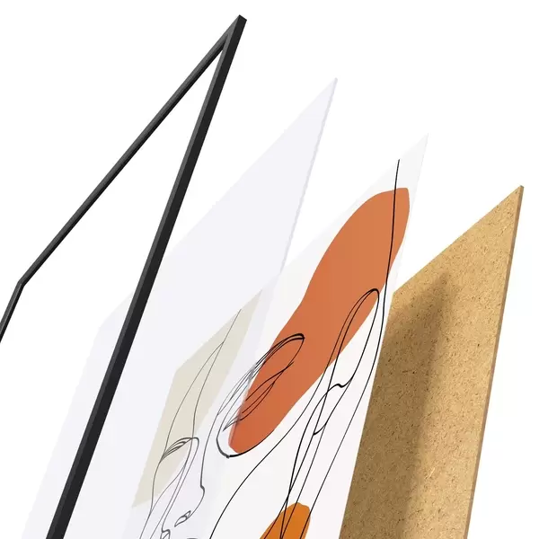 A poszter keretből, plexiből, nyomtatott képből és forgácslap hátlapból áll. A poszter a hátoldalon található rögzítőknek köszönhetően azonnal felakasztható a falra.