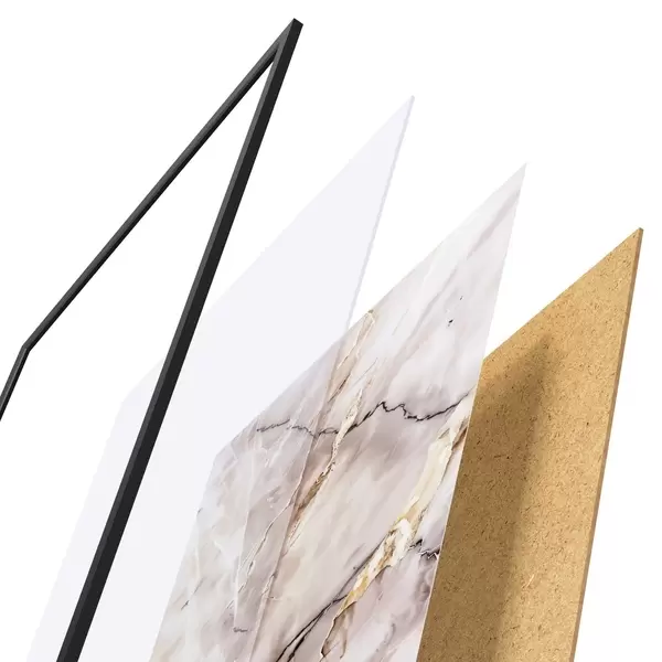 A poszter keretből, plexiből, nyomtatott képből és forgácslap hátlapból áll. A poszter a hátoldalon található rögzítőknek köszönhetően azonnal felakasztható a falra.