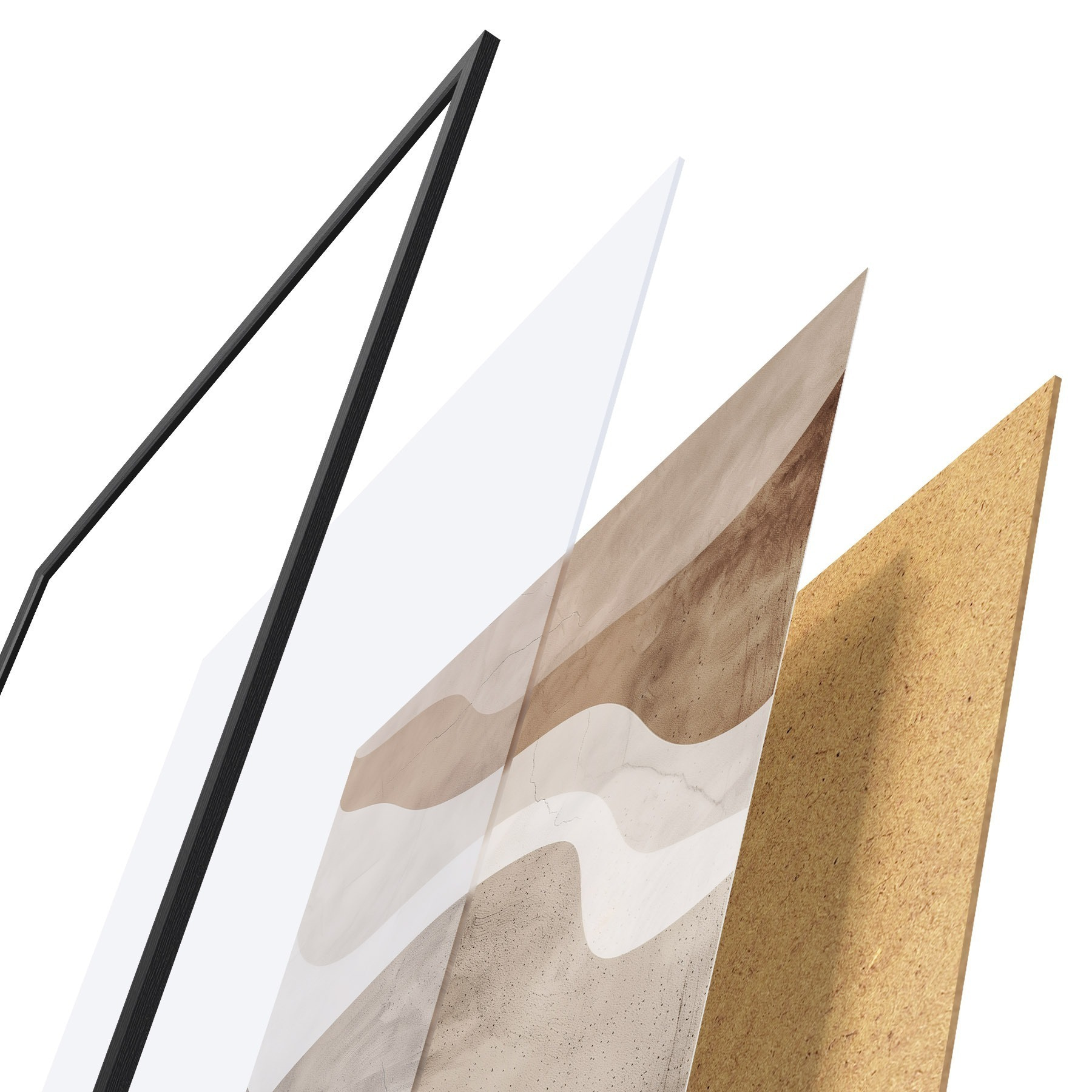 A poszter keretből, plexiből, nyomtatott képből és forgácslap hátlapból áll. A poszter a hátoldalon található rögzítőknek köszönhetően azonnal felakasztható a falra.