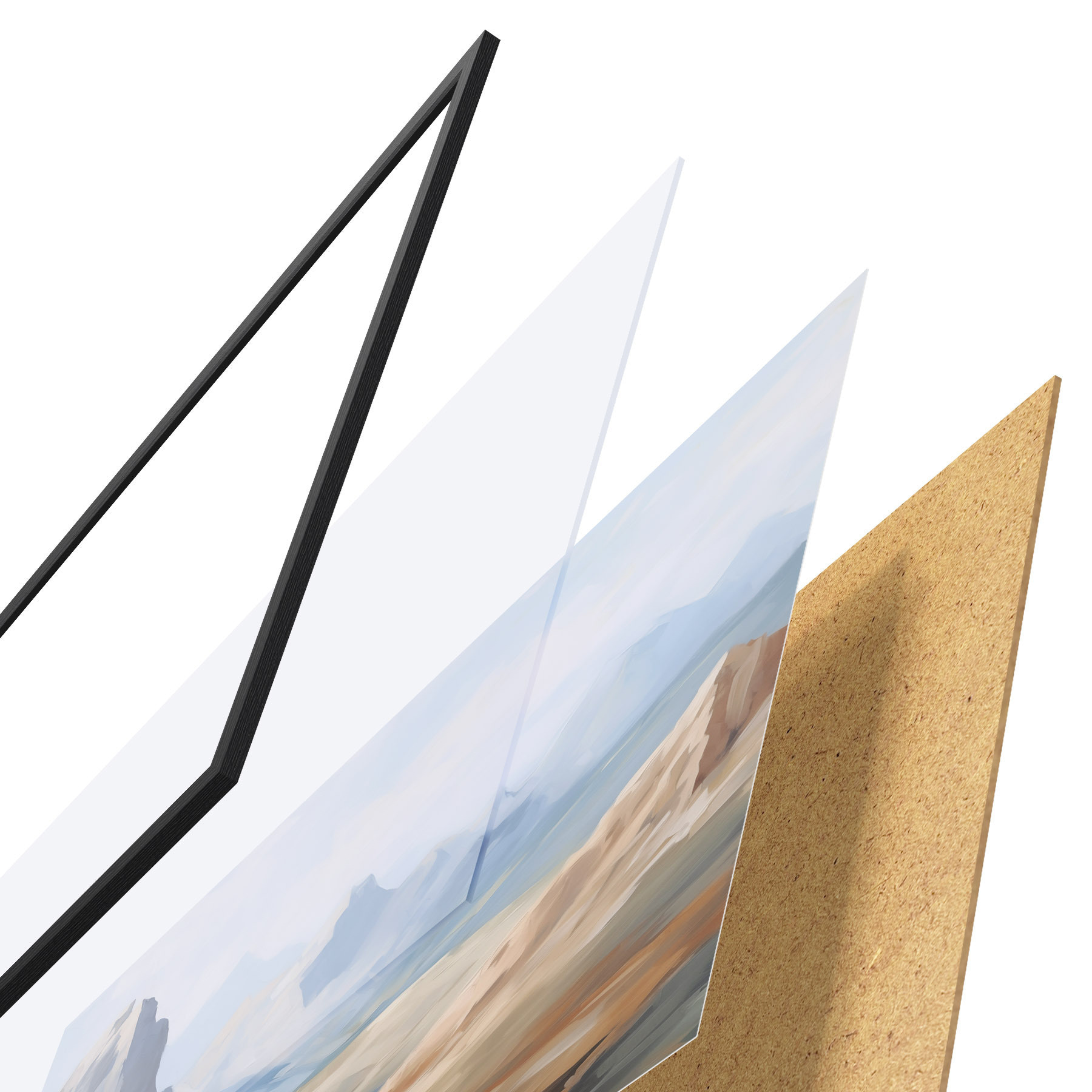A poszter keretből, plexiből, nyomtatott képből és forgácslap hátlapból áll. A poszter a hátoldalon található rögzítőknek köszönhetően azonnal felakasztható a falra.