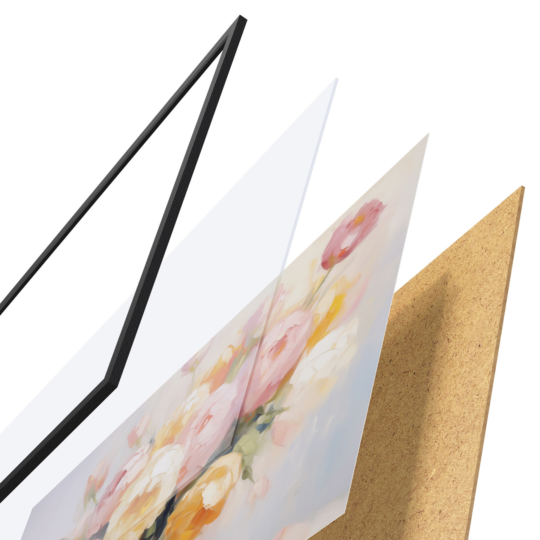 A poszter keretből, plexiből, nyomtatott képből és forgácslap hátlapból áll. A poszter a hátoldalon található rögzítőknek köszönhetően azonnal felakasztható a falra.