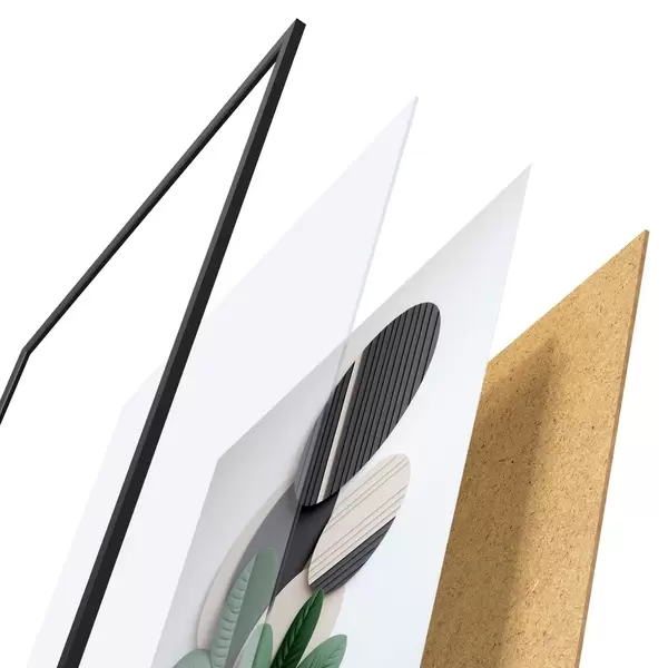A poszter keretből, plexiből, nyomtatott képből és forgácslap hátlapból áll. A poszter a hátoldalon található rögzítőknek köszönhetően azonnal felakasztható a falra.