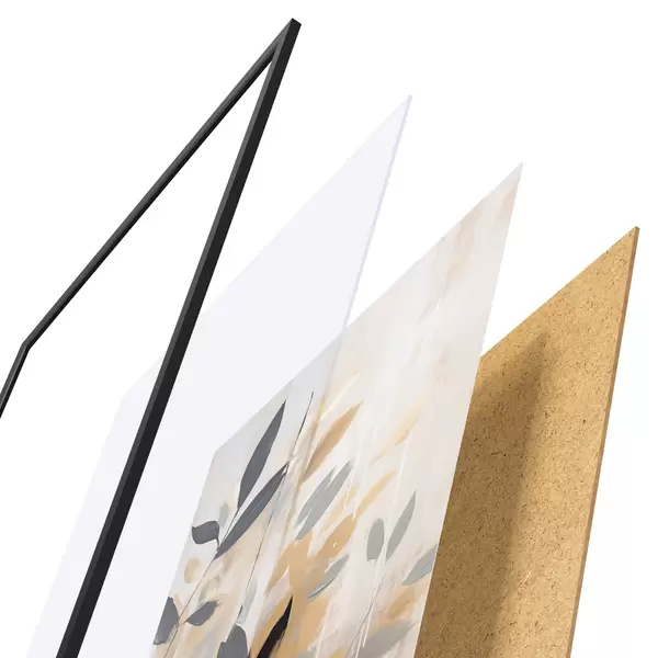 A poszter keretből, plexiből, nyomtatott képből és forgácslap hátlapból áll. A poszter a hátoldalon található rögzítőknek köszönhetően azonnal felakasztható a falra.