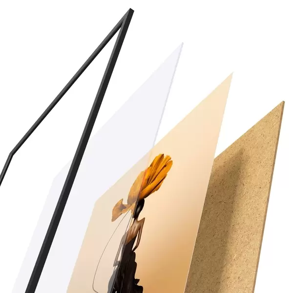 A poszter keretből, plexiből, nyomtatott képből és forgácslap hátlapból áll. A poszter a hátoldalon található rögzítőknek köszönhetően azonnal felakasztható a falra.