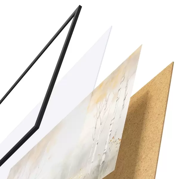 A poszter keretből, plexiből, nyomtatott képből és forgácslap hátlapból áll. A poszter a hátoldalon található rögzítőknek köszönhetően azonnal felakasztható a falra.