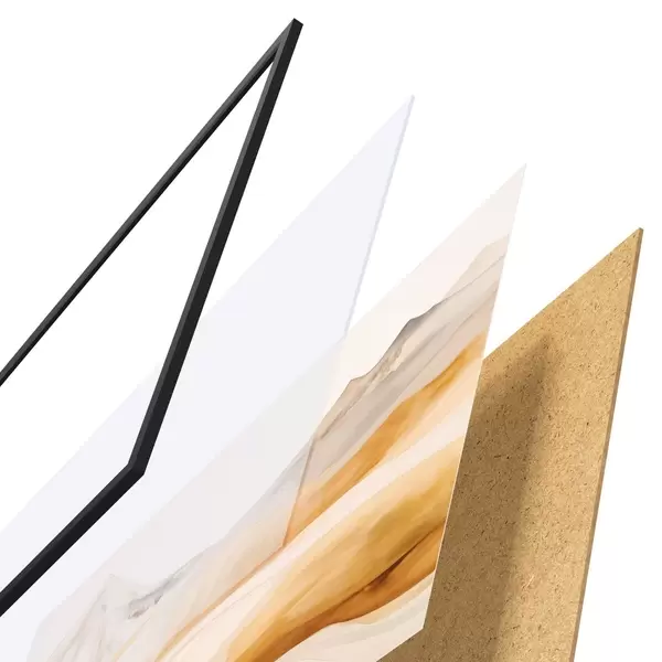 A poszter keretből, plexiből, nyomtatott képből és forgácslap hátlapból áll. A poszter a hátoldalon található rögzítőknek köszönhetően azonnal felakasztható a falra.