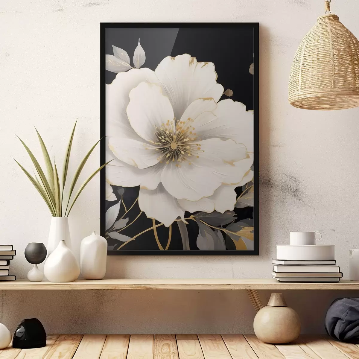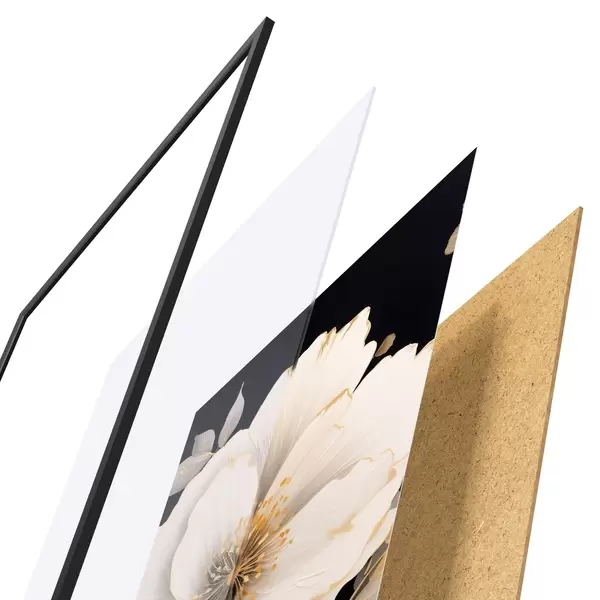 A poszter keretből, plexiből, nyomtatott képből és forgácslap hátlapból áll. A poszter a hátoldalon található rögzítőknek köszönhetően azonnal felakasztható a falra.
