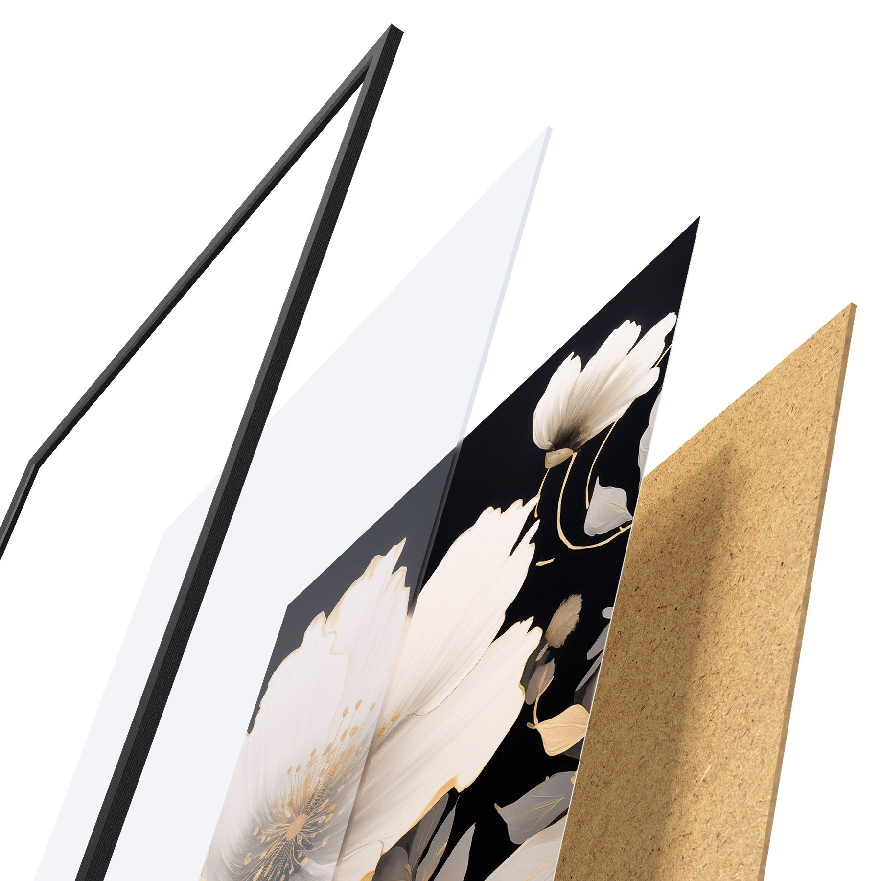 A poszter keretből, plexiből, nyomtatott képből és forgácslap hátlapból áll. A poszter a hátoldalon található rögzítőknek köszönhetően azonnal felakasztható a falra.
