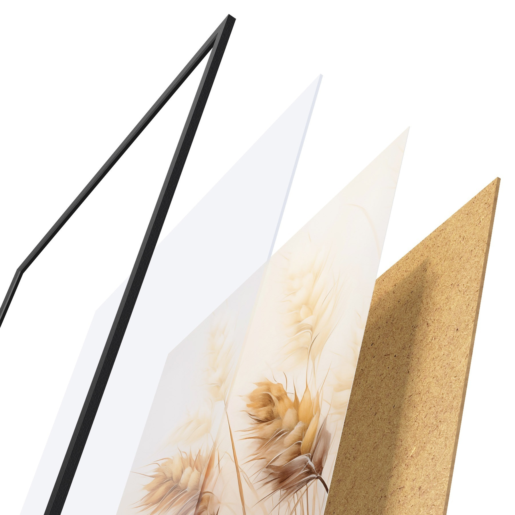 A poszter keretből, plexiből, nyomtatott képből és forgácslap hátlapból áll. A poszter a hátoldalon található rögzítőknek köszönhetően azonnal felakasztható a falra.