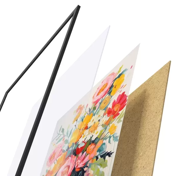 A poszter keretből, plexiből, nyomtatott képből és forgácslap hátlapból áll. A poszter a hátoldalon található rögzítőknek köszönhetően azonnal felakasztható a falra.