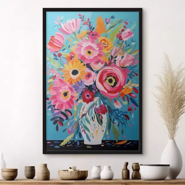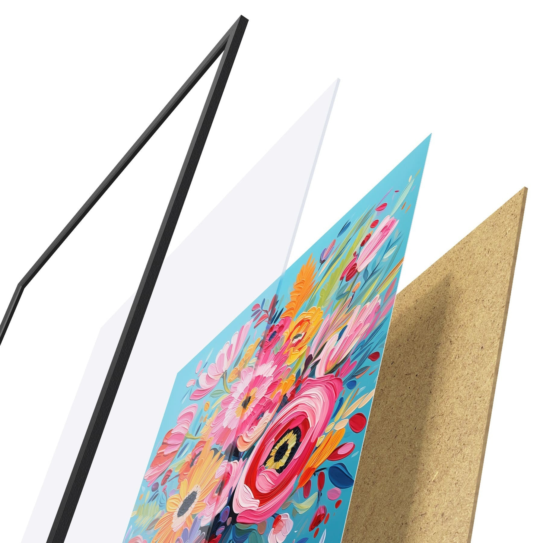 A poszter keretből, plexiből, nyomtatott képből és forgácslap hátlapból áll. A poszter a hátoldalon található rögzítőknek köszönhetően azonnal felakasztható a falra.