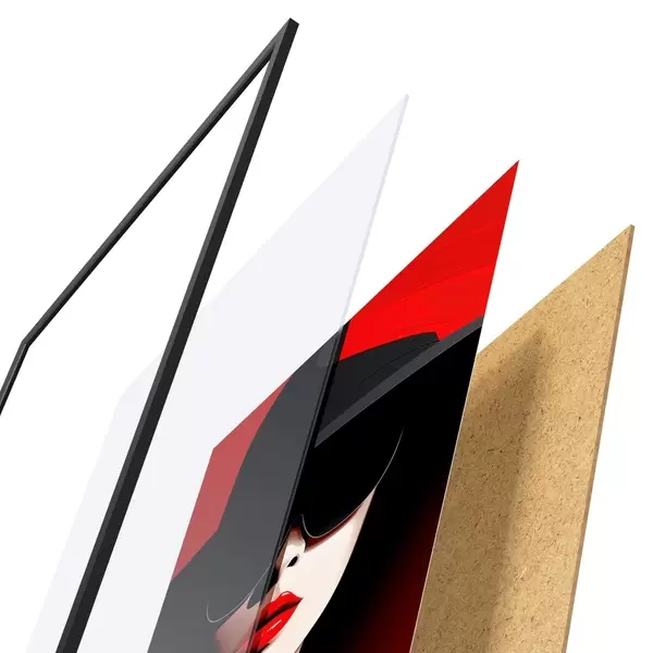 A poszter keretből, plexiből, nyomtatott képből és forgácslap hátlapból áll. A poszter a hátoldalon található rögzítőknek köszönhetően azonnal felakasztható a falra.