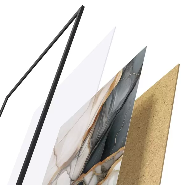 A poszter keretből, plexiből, nyomtatott képből és forgácslap hátlapból áll. A poszter a hátoldalon található rögzítőknek köszönhetően azonnal felakasztható a falra.