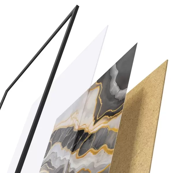 A poszter keretből, plexiből, nyomtatott képből és forgácslap hátlapból áll. A poszter a hátoldalon található rögzítőknek köszönhetően azonnal felakasztható a falra.