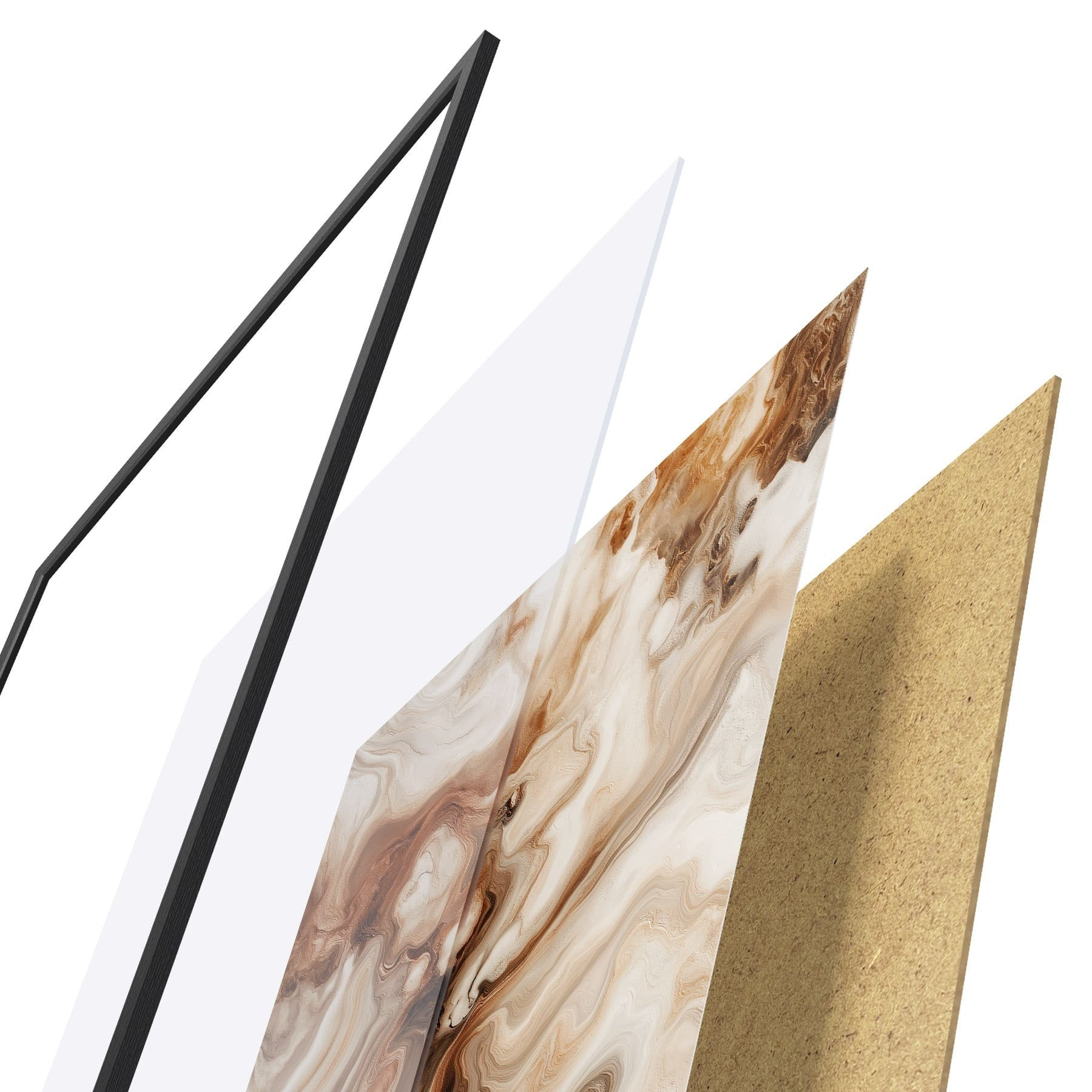 A poszter keretből, plexiből, nyomtatott képből és forgácslap hátlapból áll. A poszter a hátoldalon található rögzítőknek köszönhetően azonnal felakasztható a falra.