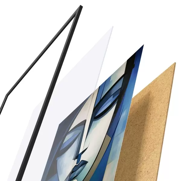 A poszter keretből, plexiből, nyomtatott képből és forgácslap hátlapból áll. A poszter a hátoldalon található rögzítőknek köszönhetően azonnal felakasztható a falra.