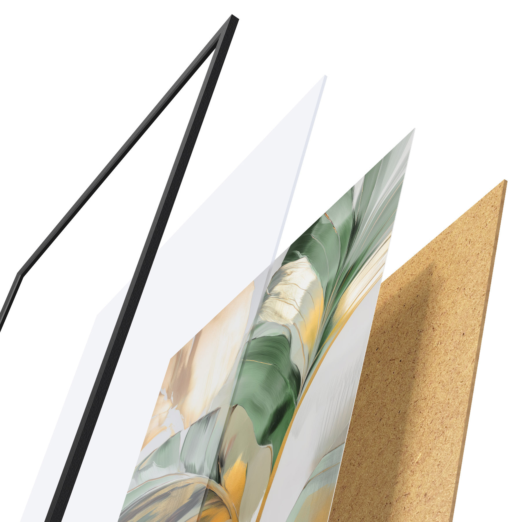 A poszter keretből, plexiből, nyomtatott képből és forgácslap hátlapból áll. A poszter a hátoldalon található rögzítőknek köszönhetően azonnal felakasztható a falra.