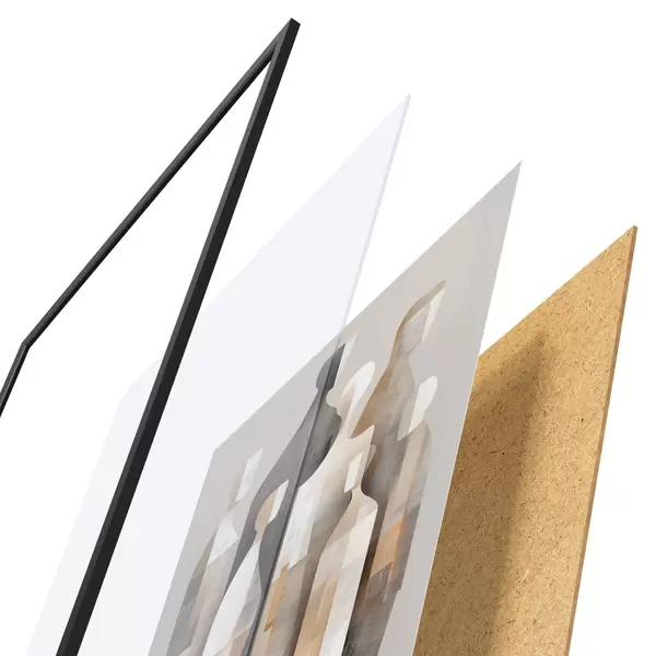 A poszter keretből, plexiből, nyomtatott képből és forgácslap hátlapból áll. A poszter a hátoldalon található rögzítőknek köszönhetően azonnal felakasztható a falra.