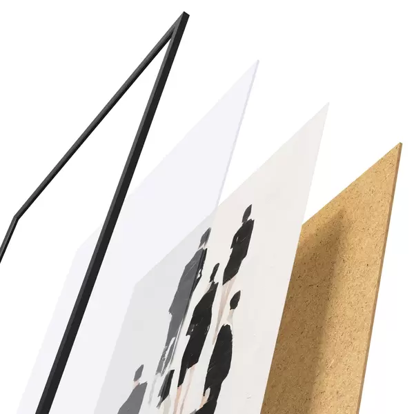 A poszter keretből, plexiből, nyomtatott képből és forgácslap hátlapból áll. A poszter a hátoldalon található rögzítőknek köszönhetően azonnal felakasztható a falra.