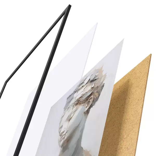 A poszter keretből, plexiből, nyomtatott képből és forgácslap hátlapból áll. A poszter a hátoldalon található rögzítőknek köszönhetően azonnal felakasztható a falra.