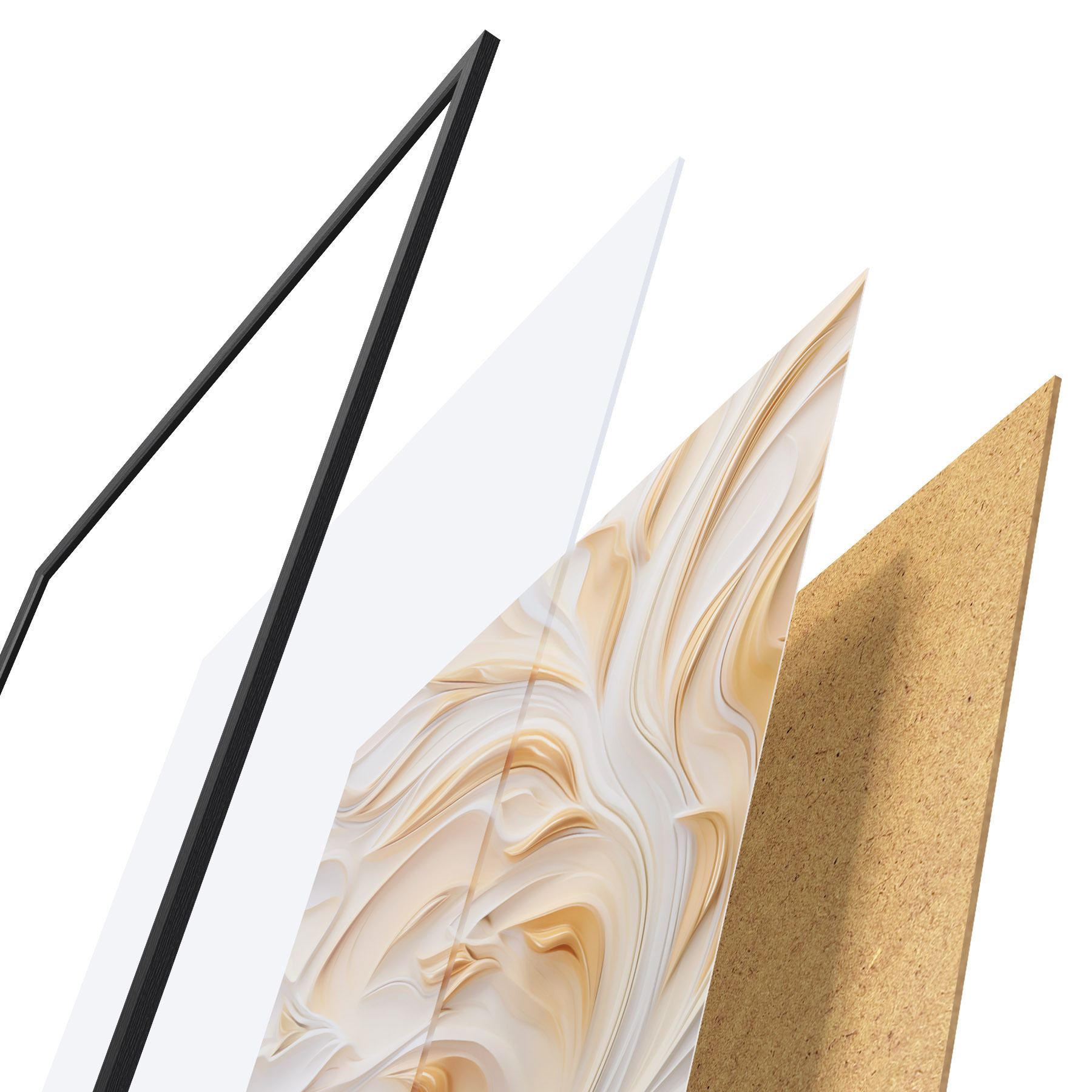 A poszter keretből, plexiből, nyomtatott képből és forgácslap hátlapból áll. A poszter a hátoldalon található rögzítőknek köszönhetően azonnal felakasztható a falra.