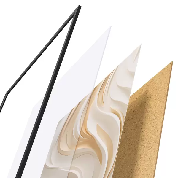 A poszter keretből, plexiből, nyomtatott képből és forgácslap hátlapból áll. A poszter a hátoldalon található rögzítőknek köszönhetően azonnal felakasztható a falra.
