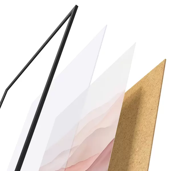 A poszter keretből, plexiből, nyomtatott képből és forgácslap hátlapból áll. A poszter a hátoldalon található rögzítőknek köszönhetően azonnal felakasztható a falra.