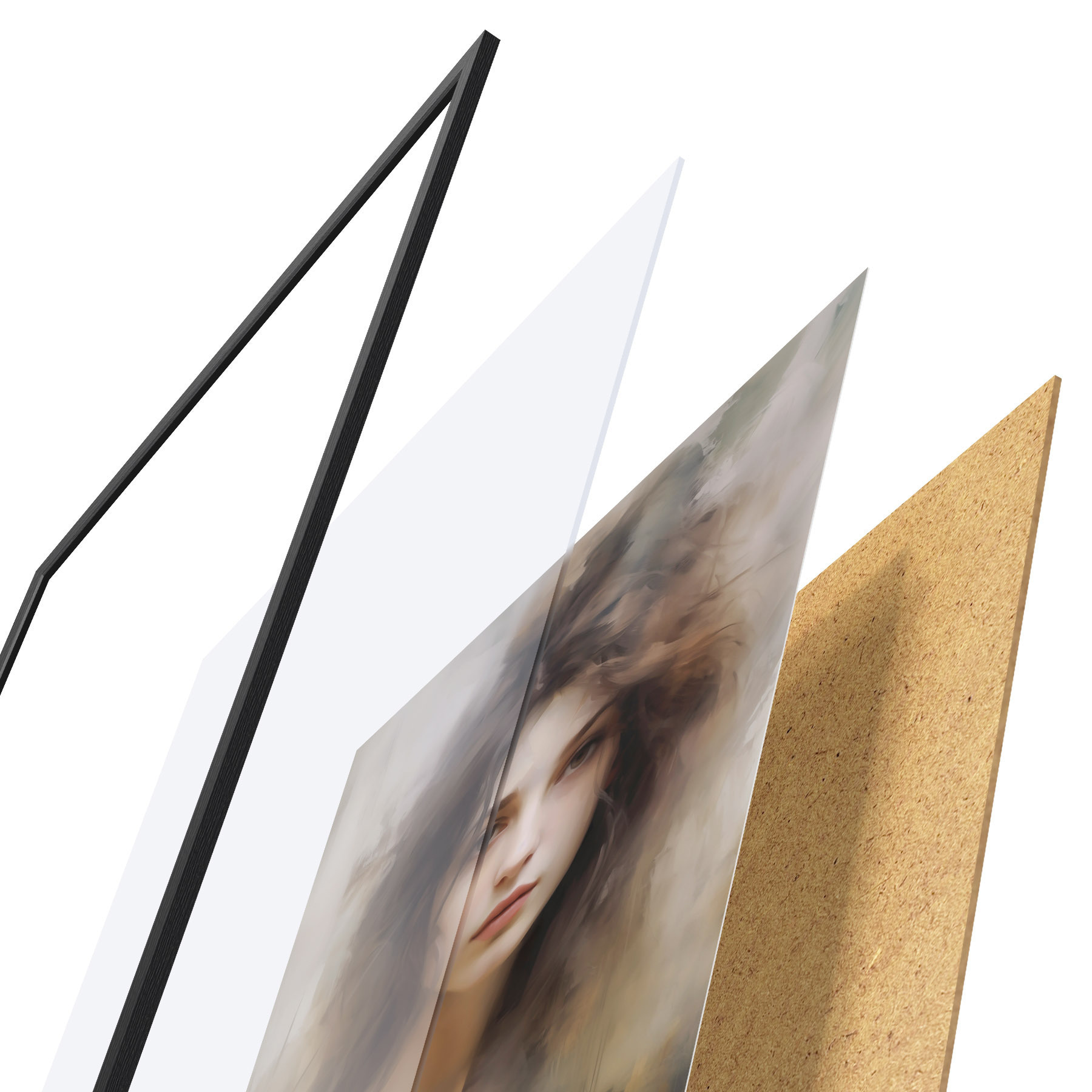 A poszter keretből, plexiből, nyomtatott képből és forgácslap hátlapból áll. A poszter a hátoldalon található rögzítőknek köszönhetően azonnal felakasztható a falra.