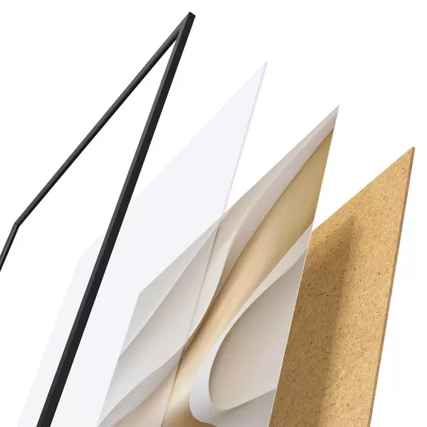 A poszter keretből, plexiből, nyomtatott képből és forgácslap hátlapból áll. A poszter a hátoldalon található rögzítőknek köszönhetően azonnal felakasztható a falra.