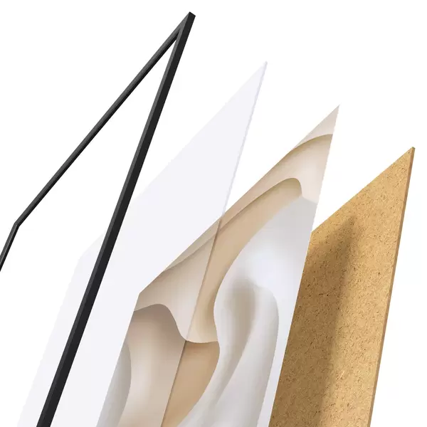 A poszter keretből, plexiből, nyomtatott képből és forgácslap hátlapból áll. A poszter a hátoldalon található rögzítőknek köszönhetően azonnal felakasztható a falra.