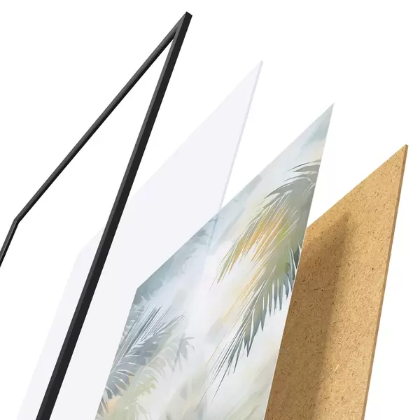 A poszter keretből, plexiből, nyomtatott képből és forgácslap hátlapból áll. A poszter a hátoldalon található rögzítőknek köszönhetően azonnal felakasztható a falra.