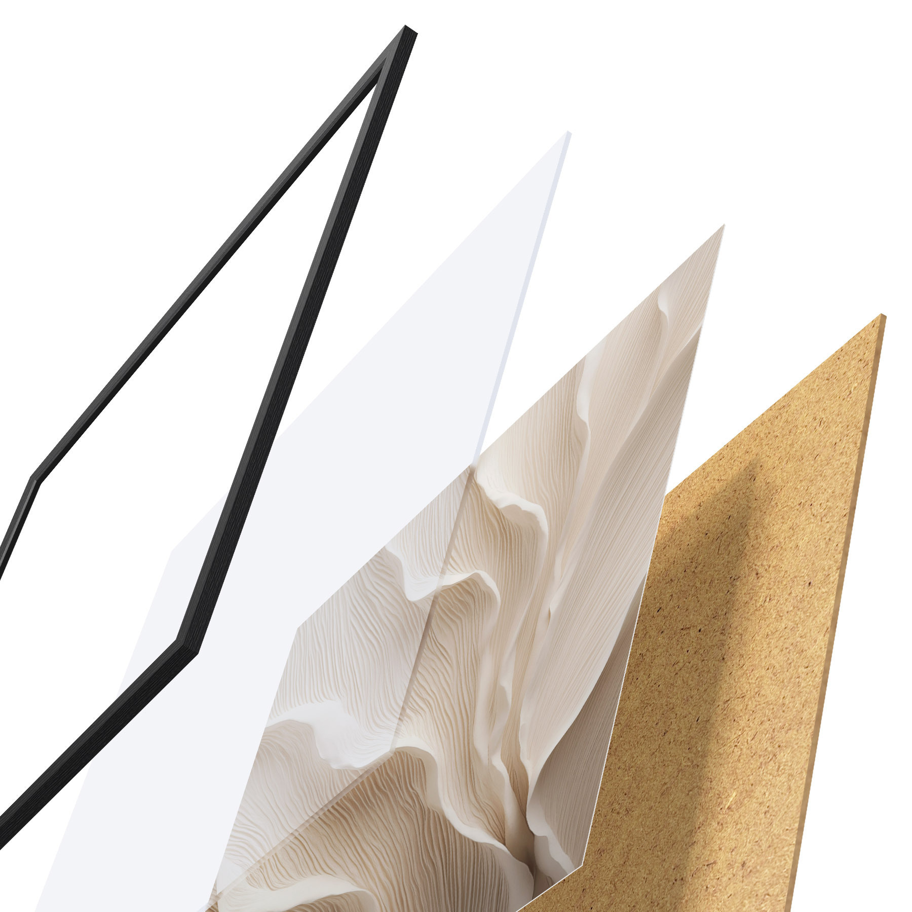 A poszter keretből, plexiből, nyomtatott képből és forgácslap hátlapból áll. A poszter a hátoldalon található rögzítőknek köszönhetően azonnal felakasztható a falra.