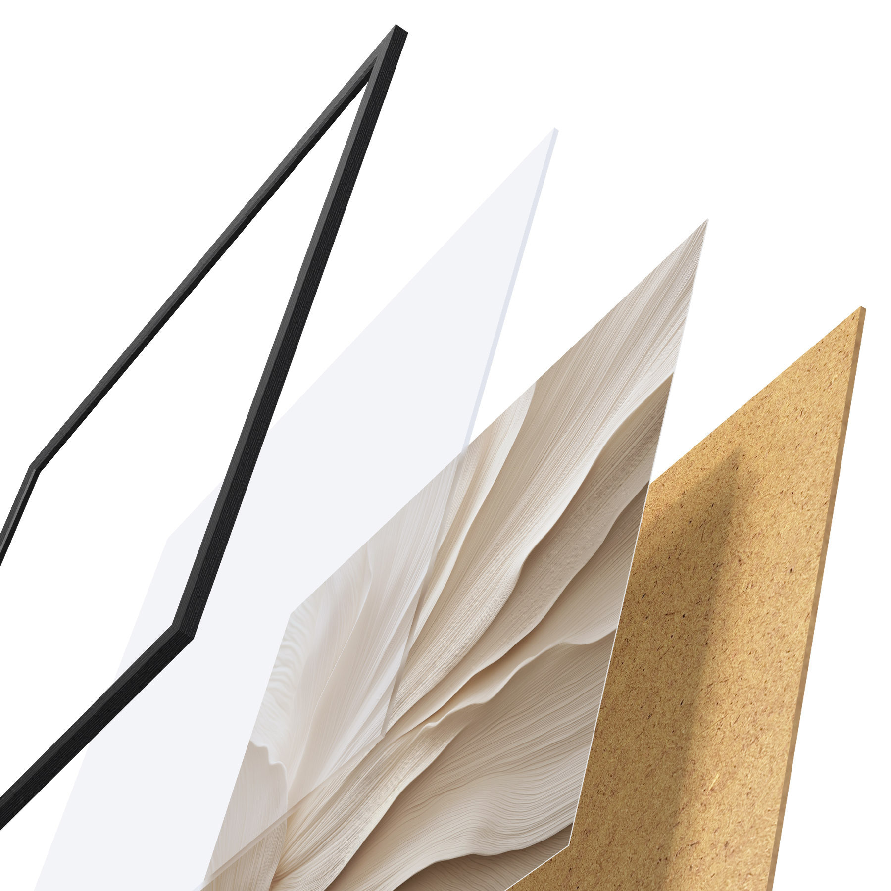 A poszter keretből, plexiből, nyomtatott képből és forgácslap hátlapból áll. A poszter a hátoldalon található rögzítőknek köszönhetően azonnal felakasztható a falra.