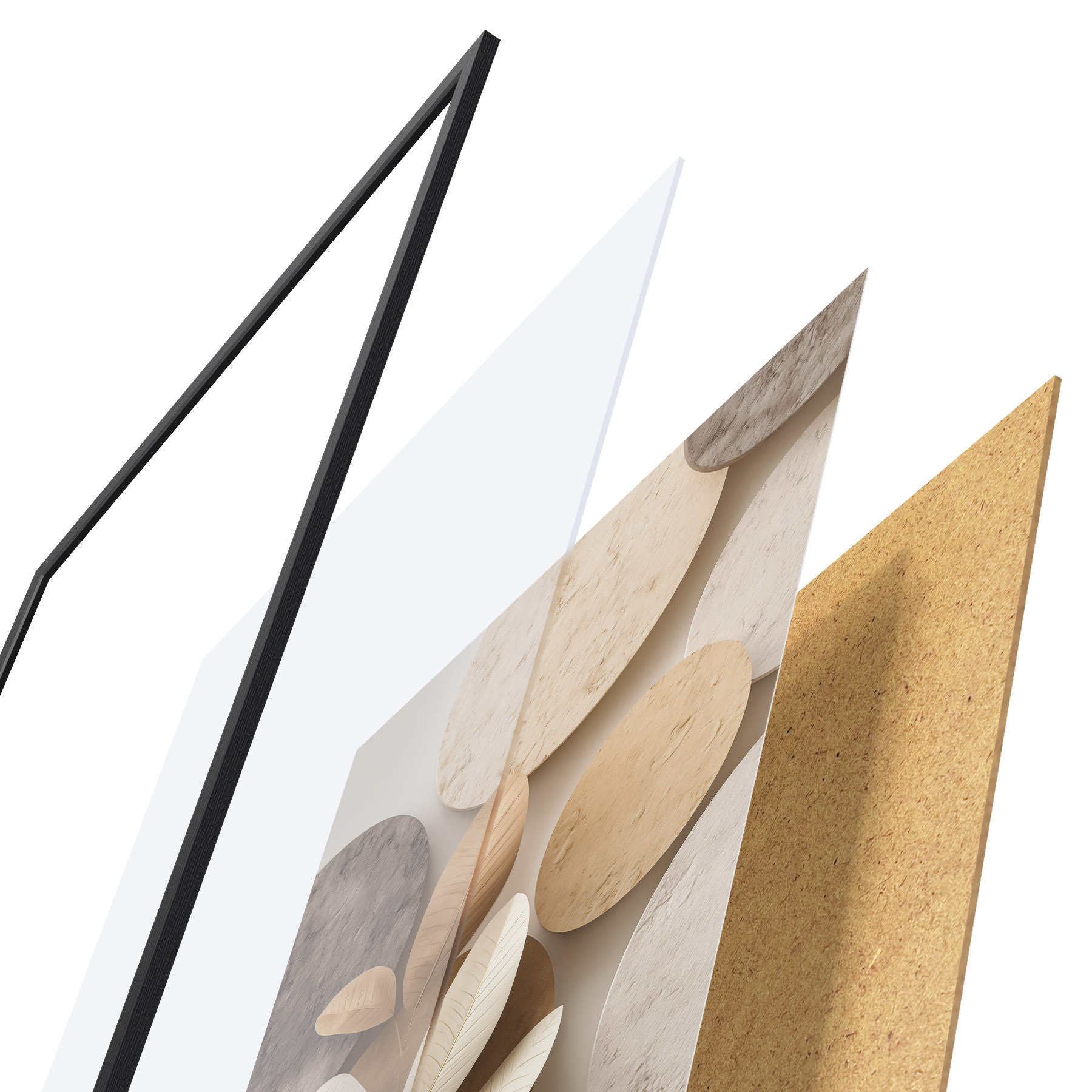 A poszter keretből, plexiből, nyomtatott képből és forgácslap hátlapból áll. A poszter a hátoldalon található rögzítőknek köszönhetően azonnal felakasztható a falra.