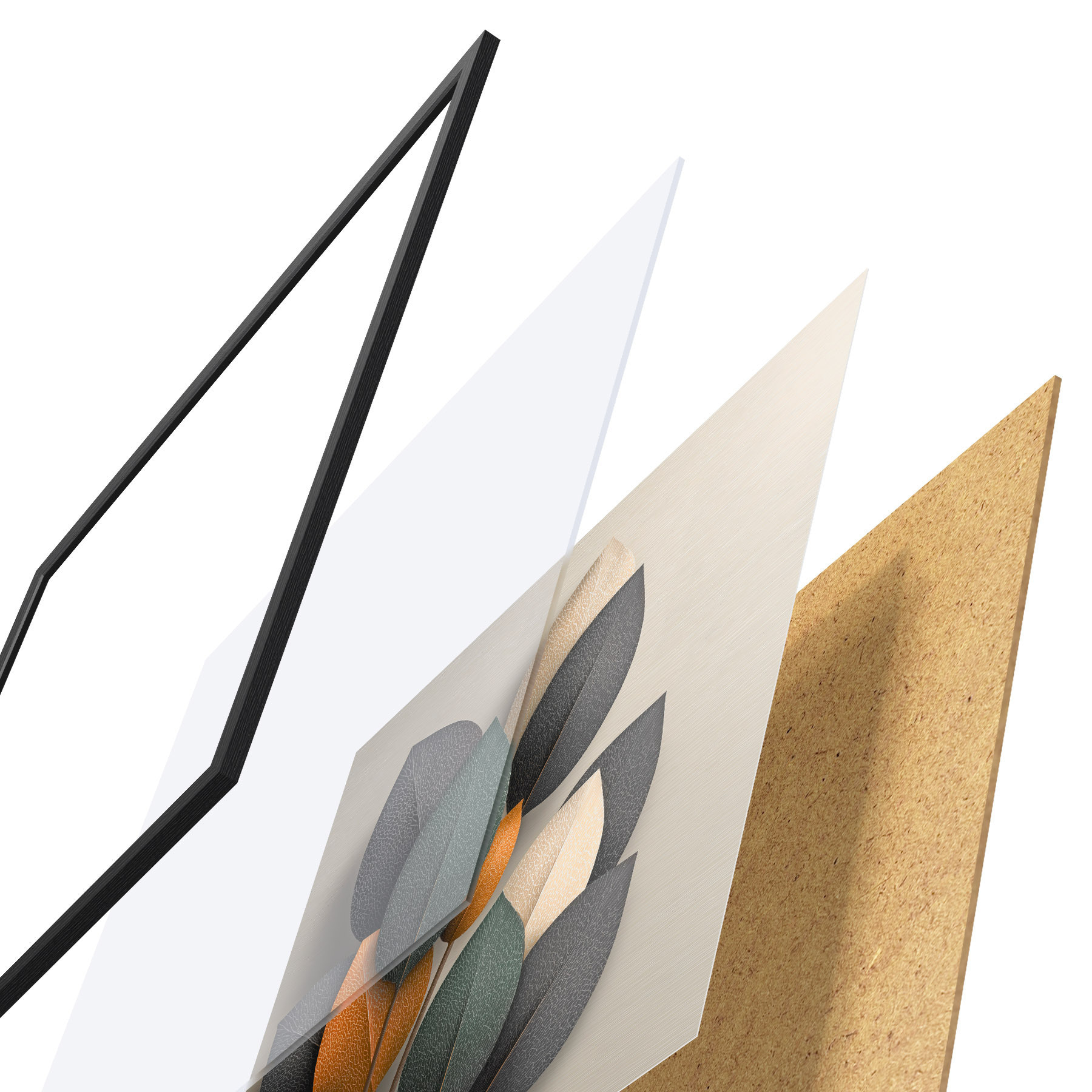 A poszter keretből, plexiből, nyomtatott képből és forgácslap hátlapból áll. A poszter a hátoldalon található rögzítőknek köszönhetően azonnal felakasztható a falra.