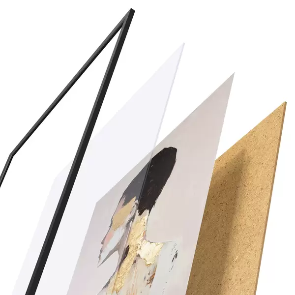 A poszter keretből, plexiből, nyomtatott képből és forgácslap hátlapból áll. A poszter a hátoldalon található rögzítőknek köszönhetően azonnal felakasztható a falra.