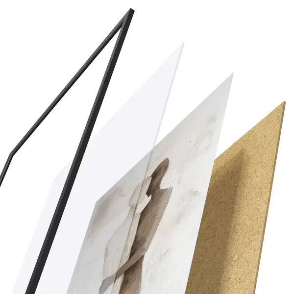 A poszter keretből, plexiből, nyomtatott képből és forgácslap hátlapból áll. A poszter a hátoldalon található rögzítőknek köszönhetően azonnal felakasztható a falra.